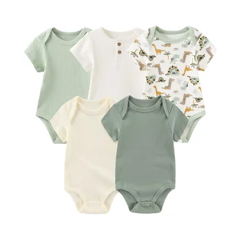 • 100% Cotton Casual Short Sleeve Bodysuit for Newborn Baby 0-12 Months Solid One-Piece Knitted Clothing for Summer Winter Spring