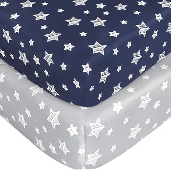 • 100% Cotton 200TC Soft Breathable Grey Navy Fitted Crib Sheets for Boy/ Girls for Standard Size Crib/Toddler Mattresses Gift