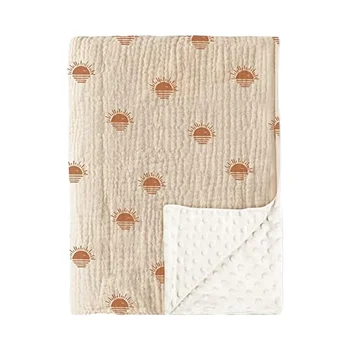 • Super Soft Minky Nursery Bed Throws for Newborn Boys Girls Knitted Muslin Cotton Leaves Pattern Dotted Front Kids' Bedding