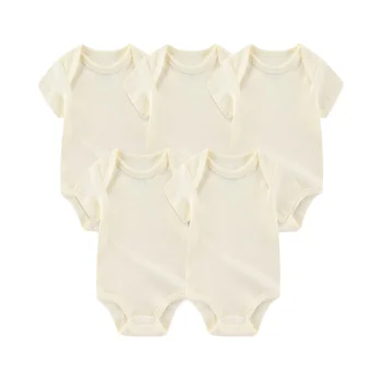 • 100% Cotton Casual Short Sleeve Bodysuit for Newborn Baby 0-12 Months Solid One-Piece Knitted Clothing for Summer Winter Spring