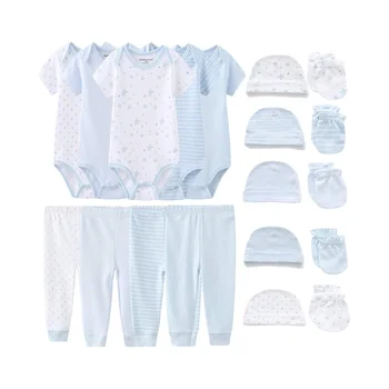 Unisex 100% Cotton Layette Essentials 19-Piece Newborn Baby Casual Pullover Closure Summer Shorts Organic Winter Season Giftset